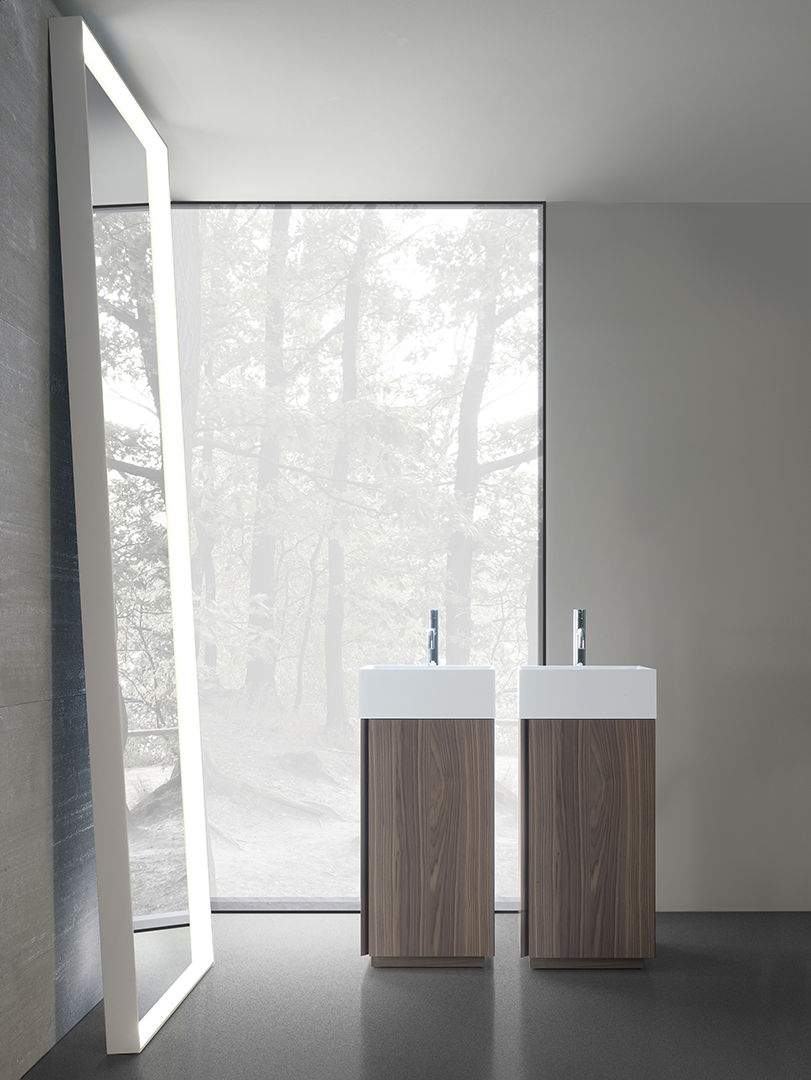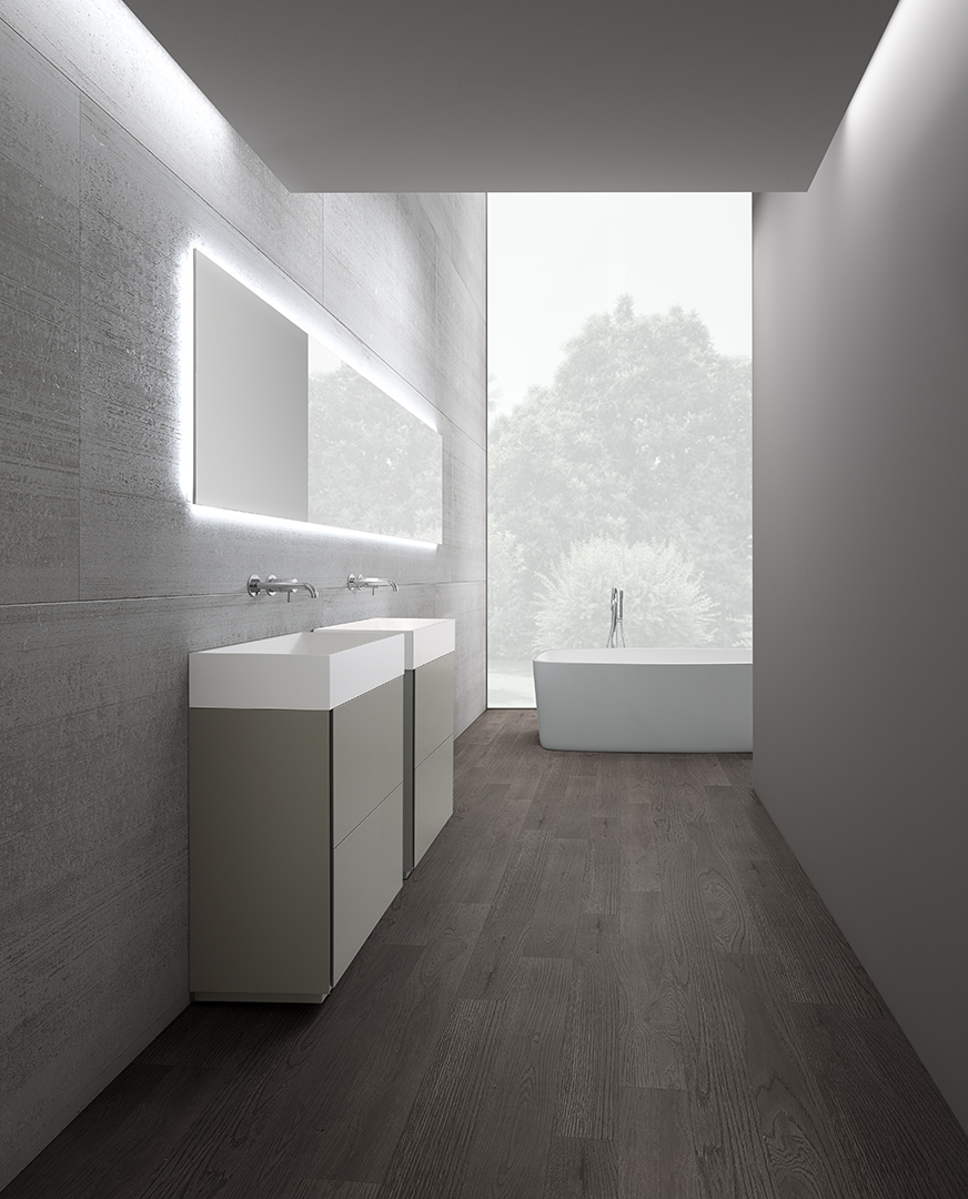 The S_40 collection is characterized by a very clean aesthetic, interrupted just by a lateral or central groove, according to the chosen solution. The system is based on 4 depths, freestanding washbasins and various containers. The available finishing for the collection are lacquer, Canaletto Walnut, Thermo Oak, 9 colors of veneer oak, solid brushed oak and Wild Wood.
