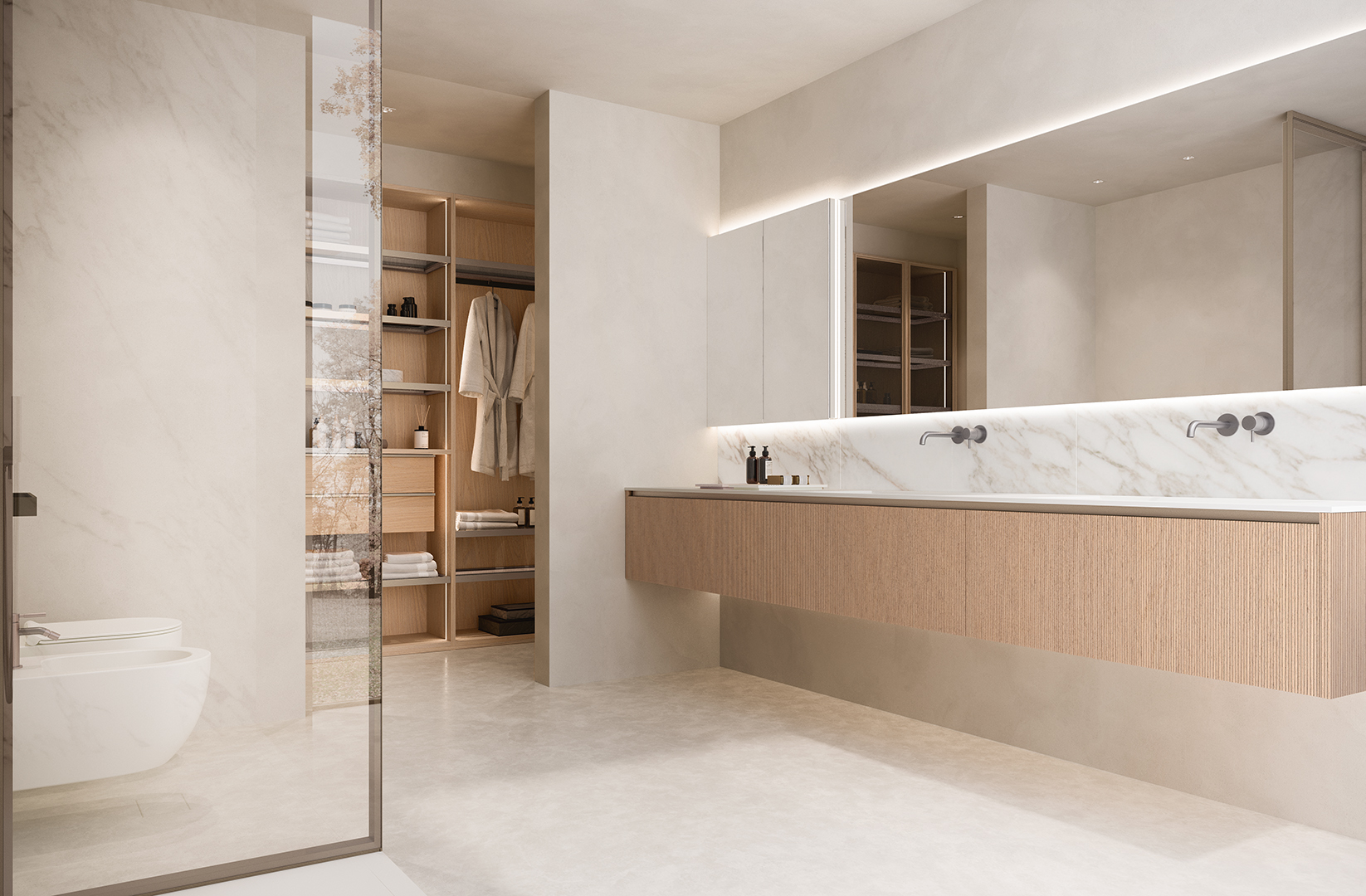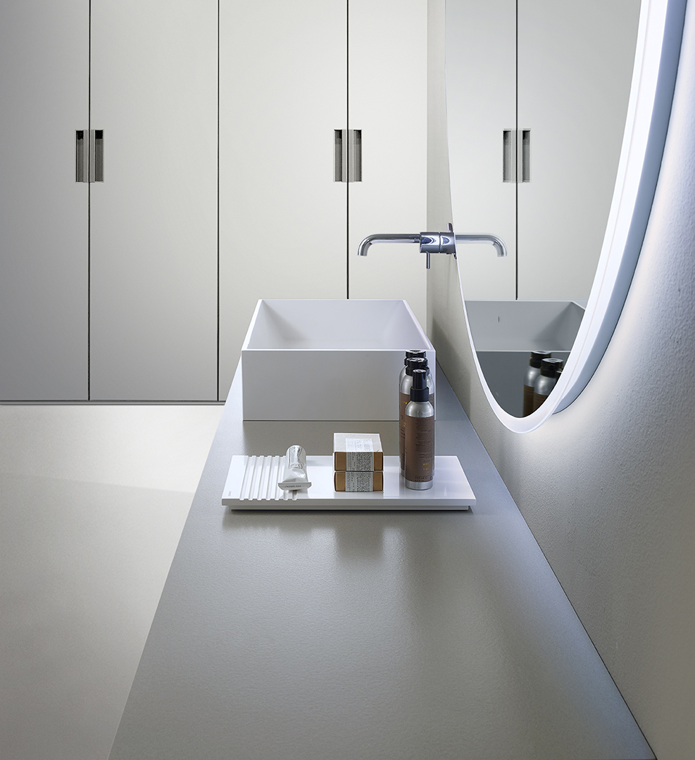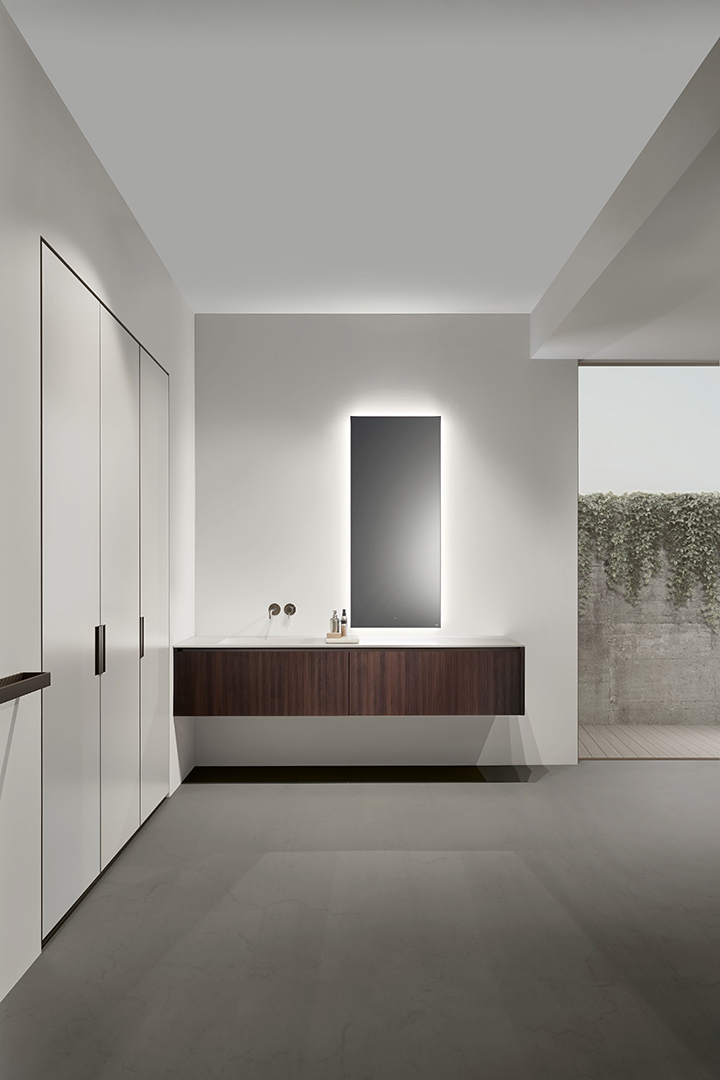 It takes its cue from the XL collection, already in the catalog for some years, with a more subtle texture that characterizes the sides and fronts of furniture and containers.