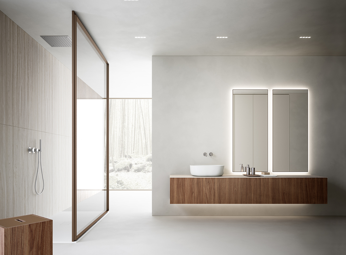 XS will include, as usual, all the modules for washbasin cabinets and containers and will be available also in the Walnut version, in the three shades provided by the samples as well as in the Oak versions. The new Walnut version is made with three-layer panels with the external parts in 4mm thick solid wood and an internal layer in Birch plywood to ensure perfect structural stability over the years.